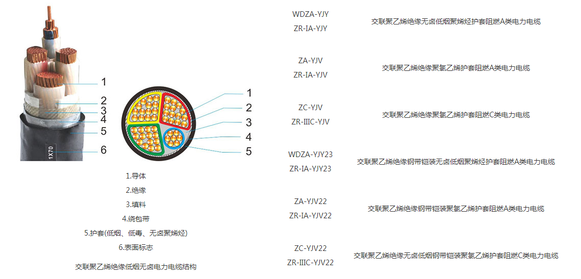 本产品适用于交流50Hz,额定电压0.6/1 kV的线路中,供输配电能作用。电缆具有低毒、低烟、无卤、阻燃安全清洁等优点。